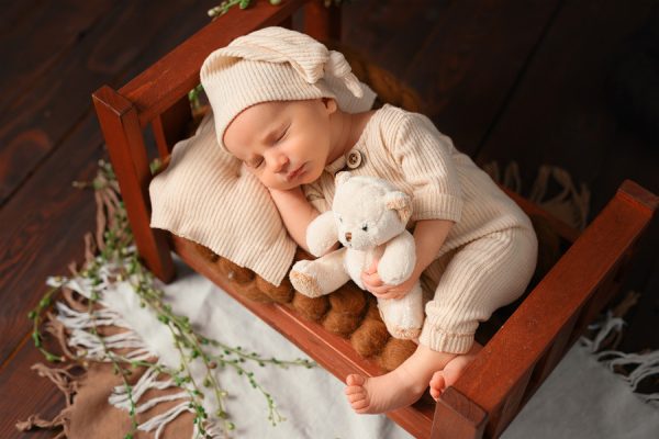 Sie schlafen die meiste Zeit, und das erleichtert uns die Arbeit. Zu Beginn werden die Babies bis auf die Windel ausgezogen, in eine kuschelige Decke gewickelt und bei Bedarf nochmal gefüttert. Sobald die Kleinen tief und fest schlafen, kann das Shooting beginnen. Die Eltern dürfen es sich gemütlich machen und staunen!